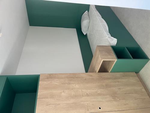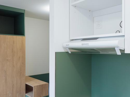 Studette d'environ 15m2 équipé d'une kitchenette et d'une salle de bain individuelle.