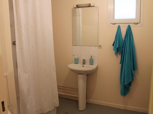 En commun, kitchenette avec mini-frigo, évier, salle d'eau (douche+wc+lavabo), placard.