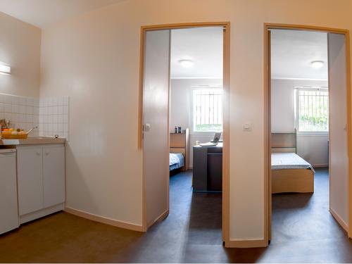 Pièce à vivre, WC, Douche, Evier + plaque, Frigo, Micro-onde